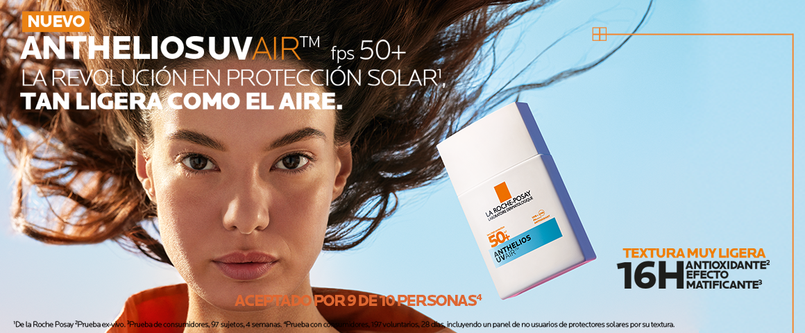 Protege tu piel con la confianza de los expertos: Anthelios UVAIR™ FPS 50+ PA++++, la protección solar N°1 Recomendada por Dermatólogos en Colombia*. Su textura muy ligera con Ácido Hialurónico + Niacinamida no solo ofrece una alta defensa contra los rayos UV, sino también un efecto antioxidante y matificante de hasta 16 horas. ¡Piel cuidada y sin brillos por más tiempo!